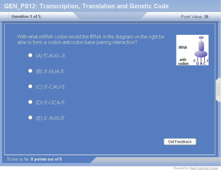 • Detailed tRNA structure and its pairing with mRNA