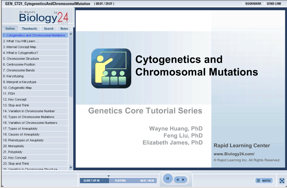 Cytogenetics is the study of the structure of normal and abnormal chromosomes, including examination of chromosome numbers and structure, learning and describing the relationships between chromosome structure and phenotype, and seeking out the causes of chromosomal abnormalities