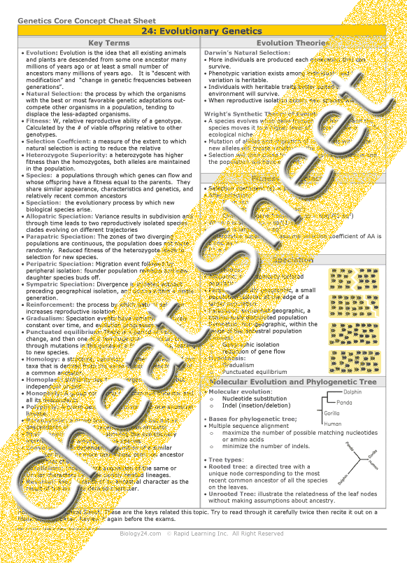 Two major theories to explain the evolution process: Darwin’s natural selection theory and Sewell Wright’s synthetic theory of evolution. The key point about natural selection theory is: more individuals are produced each generation that can survive; phenotypic variation exists among individuals and the variation is heritable; individuals with heritable traits better suited to the environment will survive; when reproductive isolation occurs new species will form. The key points about synthetic theory are: a species evolves when gene frequencies changes and the species moves it to a higher level of adaptation for a specific ecological niche; mutation of alleles and migration of individuals with those new alleles will create variation in the population; selection will then chose the better adapted individuals and the population will have evolved. This theory attempts to explain evolution in terms of changes in gene frequencies.