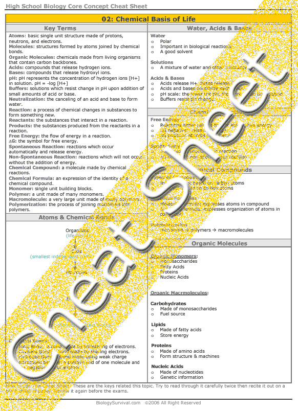 See all 24 lessons in high school biology, including concept tutorials, problem drills and cheat sheets:  Teach Yourself High School Biology Visually in 24 Hours