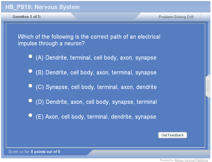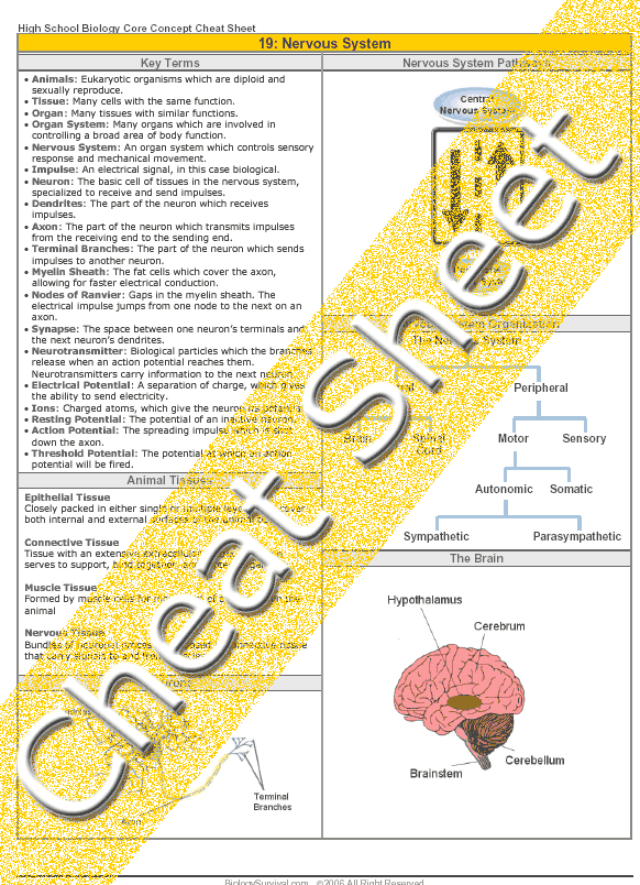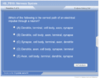 Most neurons are at a resting potential, caused by separation of ions in the cell. An action potential, an electrical impulse that can travel far distances, is sent whenever the neuron passes threshold potential. The synapse is the area between one neuron and another neuron, or one neuron and a muscle cell.