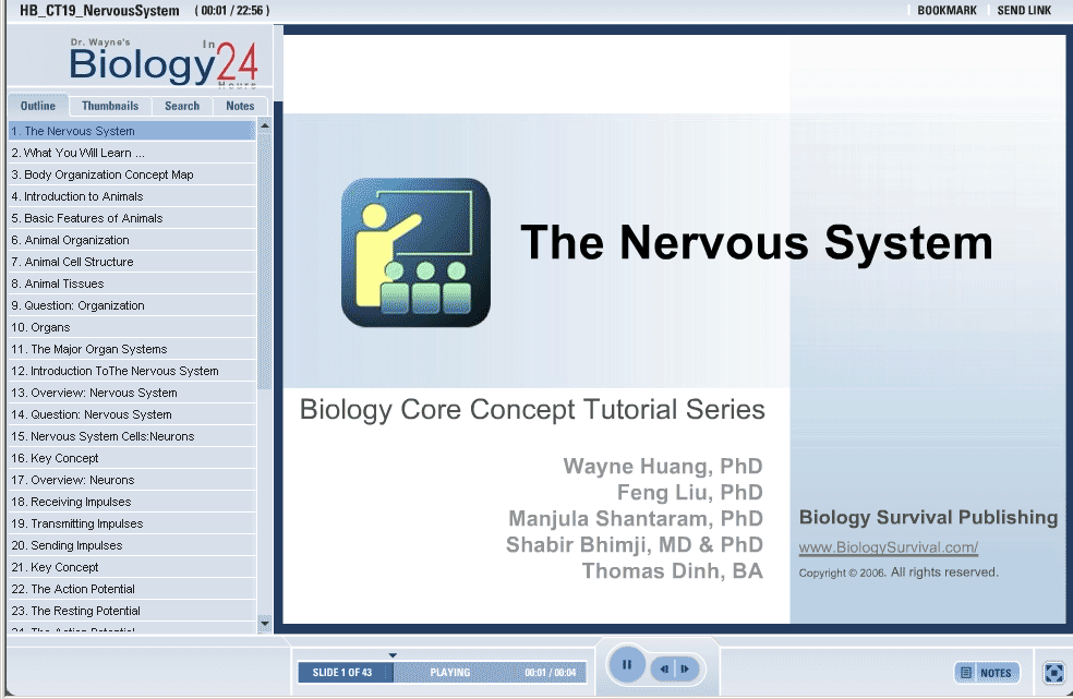 The peripheral nervous system is divided into the sensory and motor nervous systems. The sensory nervous system gathers information from the outside environment. The motor nervous system controls muscles. The motor system is divided into the somatic and autonomic system. The somatic system controls voluntary movements. The autonomic system controls involuntary movements, such as heartbeat.
