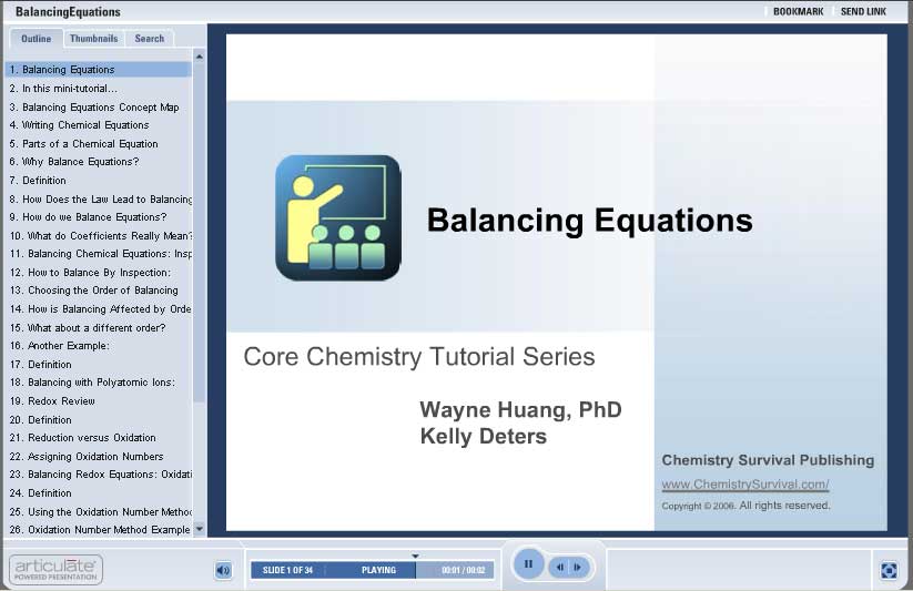 - Multiple methods of balancing equations are worked out in animation.