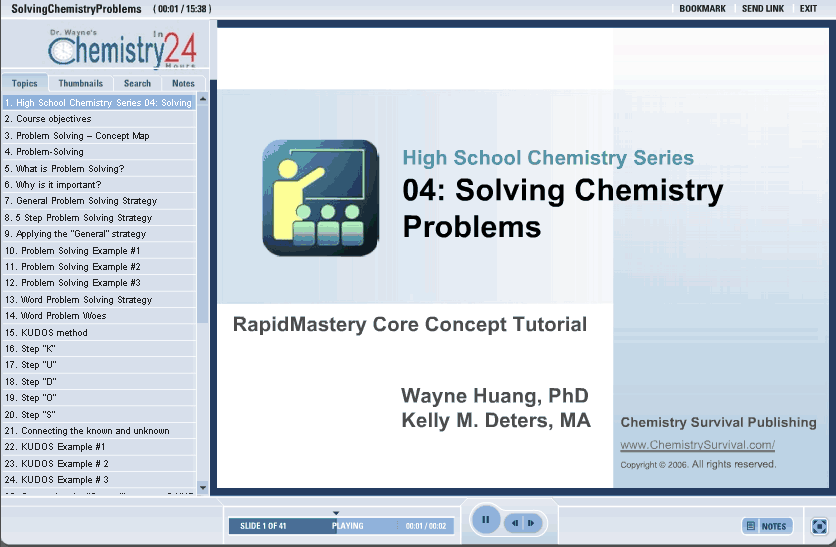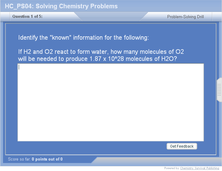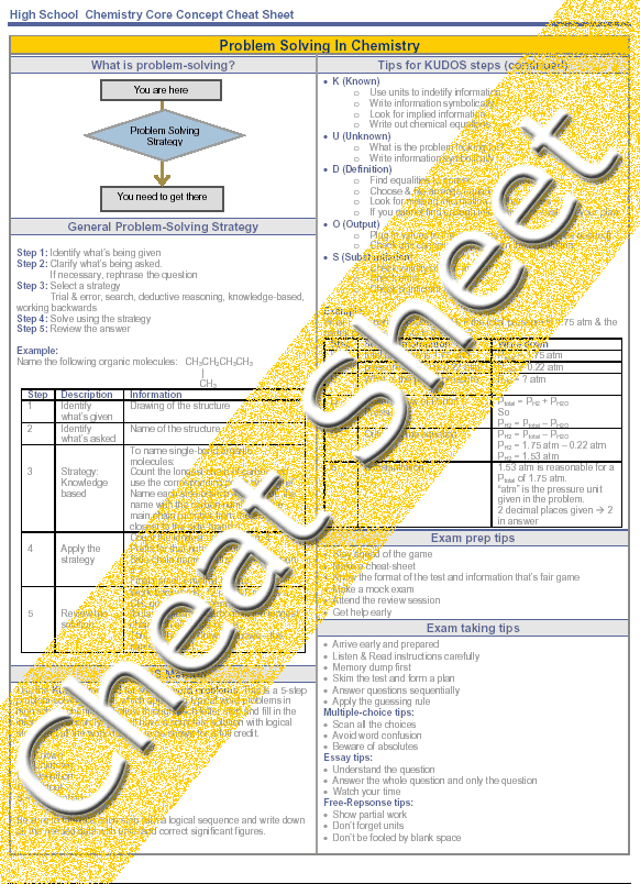 You will encounter problems throughout your chemistry course. A “problem” is anytime you don’t know how to get from the known information to the unknown information. Having a systematic method to “attack” problems can make them much easier. A general problem-solving technique is introduced in this tutorial as well as a specific technique for word problems. Tips for preparing for and taking tests are also given.