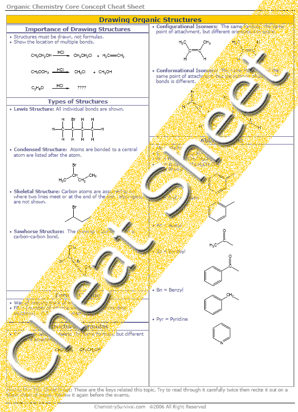 In Lewis structures, all individual bonds are shown. Formal charge is a way of keeping track of the electrons. Formal charge is equal to [number of valence electrons] B [nonbonding electrons] B 0.5 [bonding electrons]. In condensed structural formulas, atoms are bonded to a central atom are listed after the atom. In a skeletal structure, carbon atoms are assumed to be where two lines meet or at the end of the line. Hydrogens are not shown. In a sawhorse structure, the drawing is looking down the carbon-carbon bond.