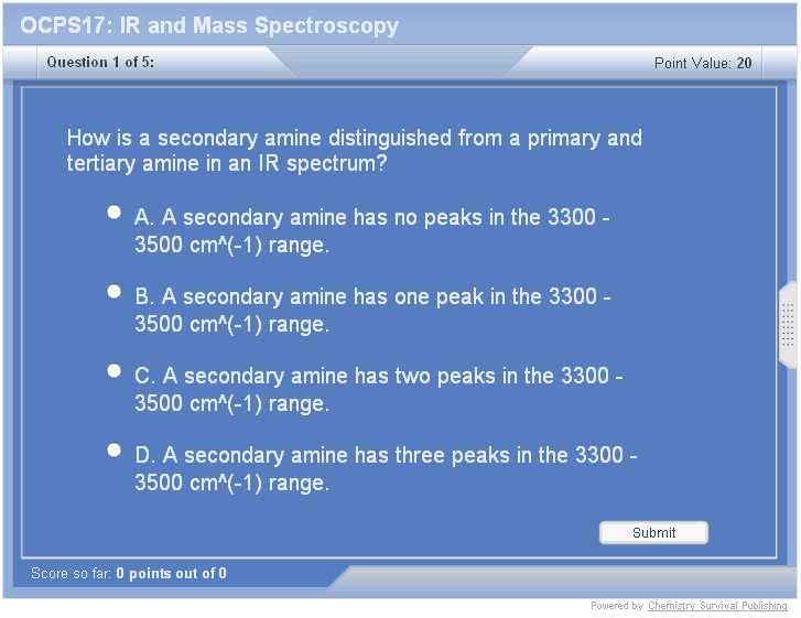 The five zones for IR interpretation are described. Distinct trends appear in an IR spectrum for alcohol, alkyne, alkane, aryl, vinyl, aldehyde, carboxylic acid, alkyne, nitrile, carbonyl functional groups, alkene, and amine