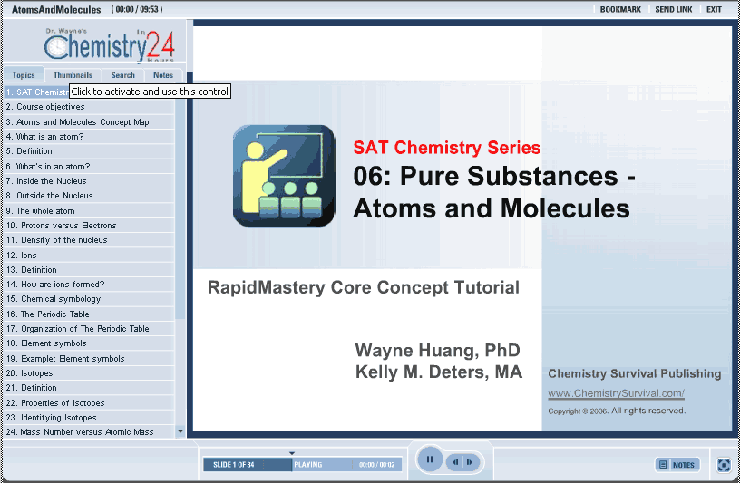 Chemistry is the study of matter and its interactions.  Matter is made of atoms, which make elements and molecules.  Basic atomic structure and symbology is introduced in this tutorial, along with ions and isotopes.