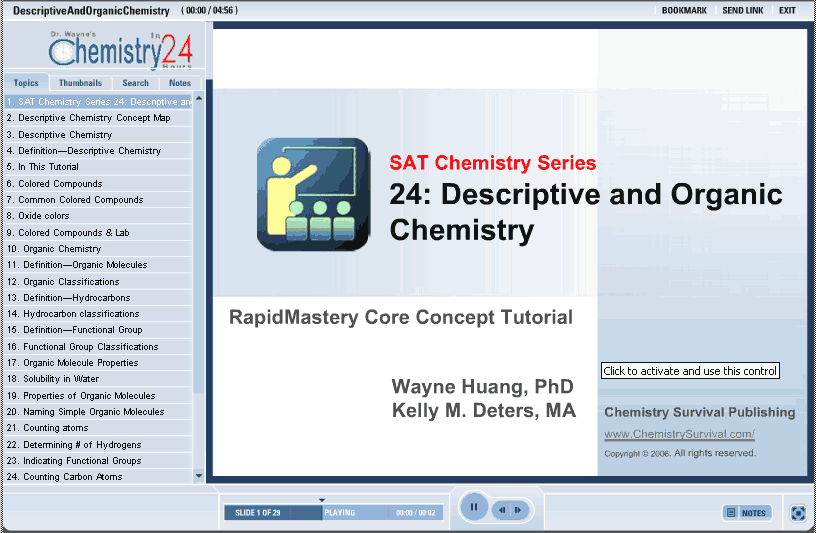 Descriptive chemistry includes predicting products and periodic trends, which were covered in previous tutorials.