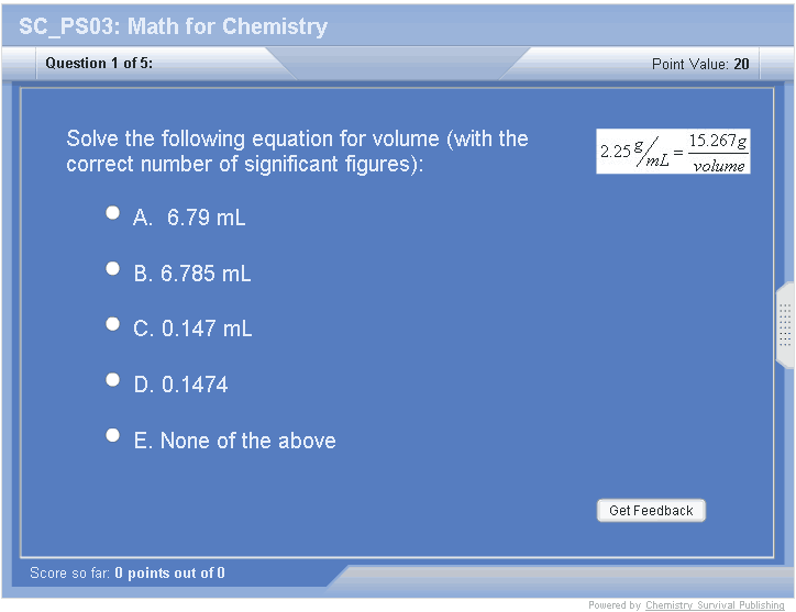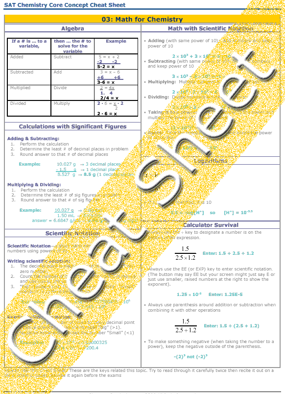 Math skills are needed throughout a chemistry course.