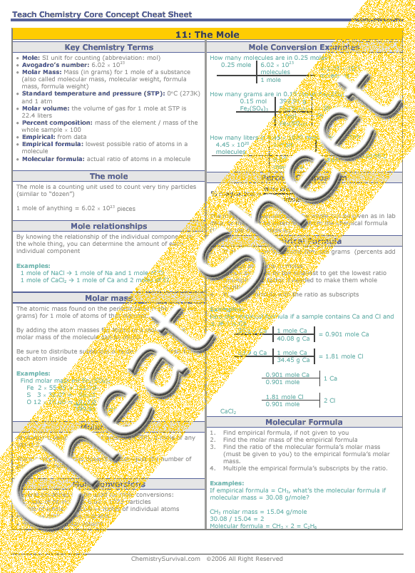 See all 24 lessons in college chemistry, including concept tutorials, problem drills and cheat sheets: