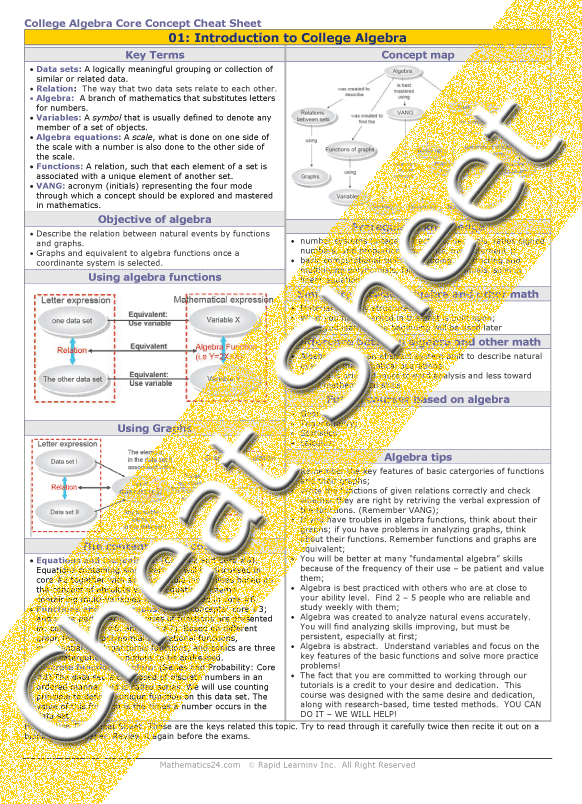 See all 24 lessons in College Algebra, including concept tutorials, problem drills and cheat sheets: