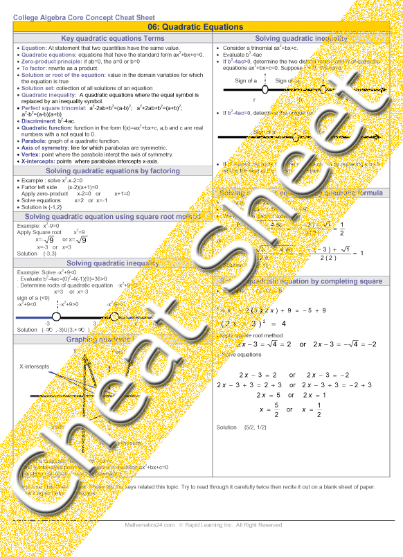 See all 24 lessons in College Algebra, including concept tutorials, problem drills and cheat sheets: