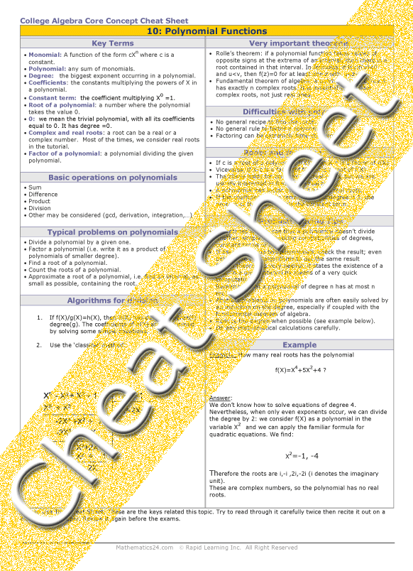 See all 24 lessons in College Algebra, including concept tutorials, problem drills and cheat sheets: