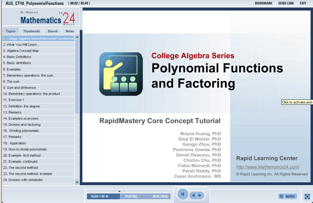 The principles of computing polynomial quotients are seen in this tutorial. The roots of polynomials are defined with the use of examples. Important theorems such as Rolle’s Theorem are discussed to emphasize the importance of the polynomial roots.