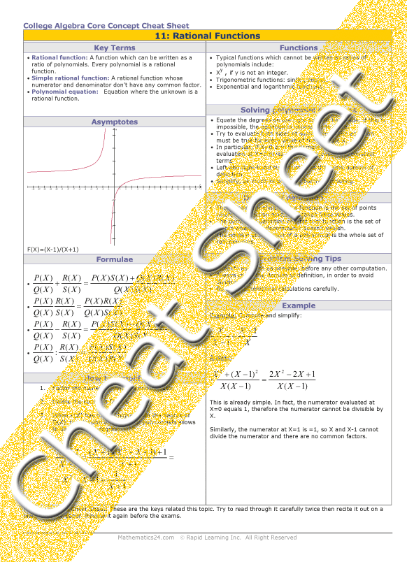 See all 24 lessons in College Algebra, including concept tutorials, problem drills and cheat sheets: