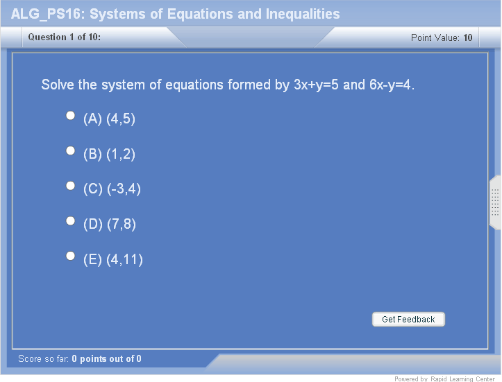 Systems of Equations Solutions of system of equations Different methods to solve a system of equations Graphing Equations Solving a system graphically Solving a system Solving q system by addition Solving a system by substitution Matrix techniques Solving by matrix techniques Systems of inequalities Solving a system of inequalities Inequalities and their applications |