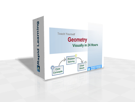 Video Tour | Core Tutorial | Problem Drill | Cheatsheet | AudioBook | Printable This geometry rapid learning course is designed for students who have taken basic algebra (Algebra 1 or Elementary Algebra). This is often the second high school math course. This comprehensive course includes points, lines, triangles, circles quadrilaterals and coordinate geometry, with the focus on concept understanding and problem solving. The visual tutorials with expert narration provide an easier entry to the visual world of geometry. With our breakthrough 24x Rapid Learning SystemTM of smart teaching and rich media, you can now finally gain a powerful learning edge over others who are still struggling with static textbooks and online freebies. Catch up and excel in class with the host of tightly integrated learning modules, designed specifically for today's web and video savvy students and supported by a team of teaching experts. Speed up your learning one chapter one hour at a time. The entire 24-chapter rapid learning package includes: