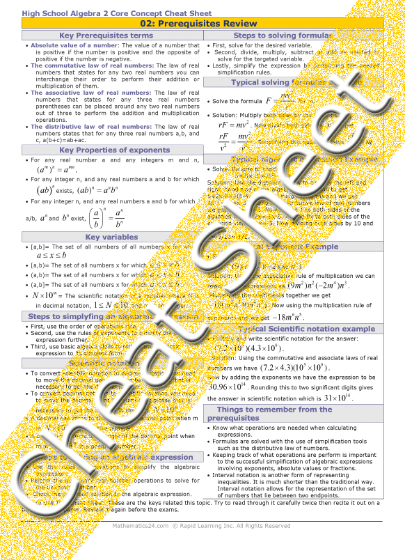 See all 24 lessons in High School Algebra 2, including concept tutorials, problem drills and cheat sheets: