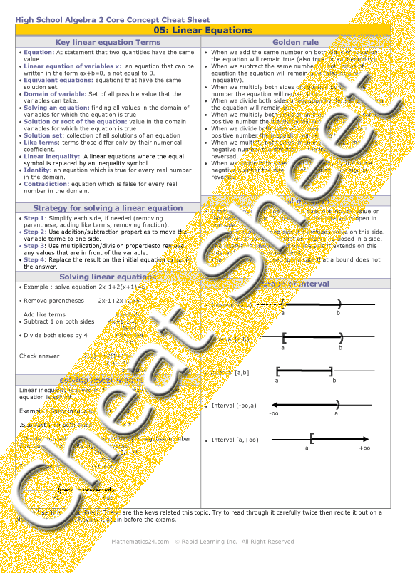 See all 24 lessons in High School Algebra 2, including concept tutorials, problem drills and cheat sheets: