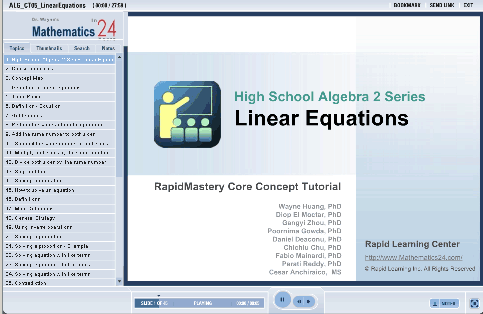 This tutorial describes what linear equations are and how they are used in application problems. Arithmetic multiplication and division operations techniques are used to show the importance of solving linear equations for unknown variables. Linear operations can be solved through the use of inverse operations.