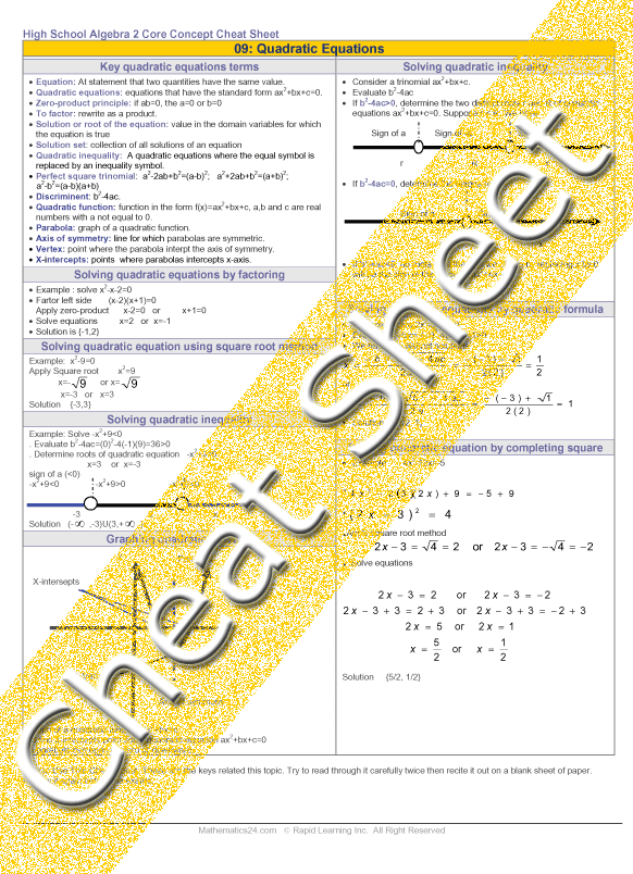 See all 24 lessons in High School Algebra 2, including concept tutorials, problem drills and cheat sheets: