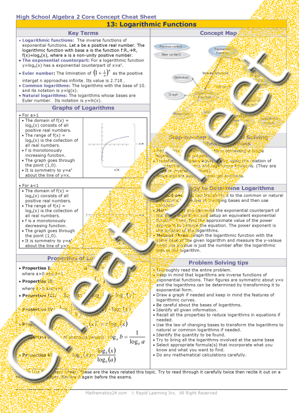 See all 24 lessons in High School Algebra 2, including concept tutorials, problem drills and cheat sheets: