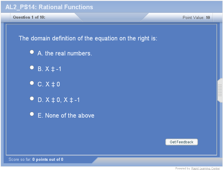 Rational functions and their basic definitions The domain of rational functions Rational functions and their asymptotes Formulas The operations of rational functions Simple rational functions Simplification of rational functions Polynomial equations Polynomial equations and their solutions