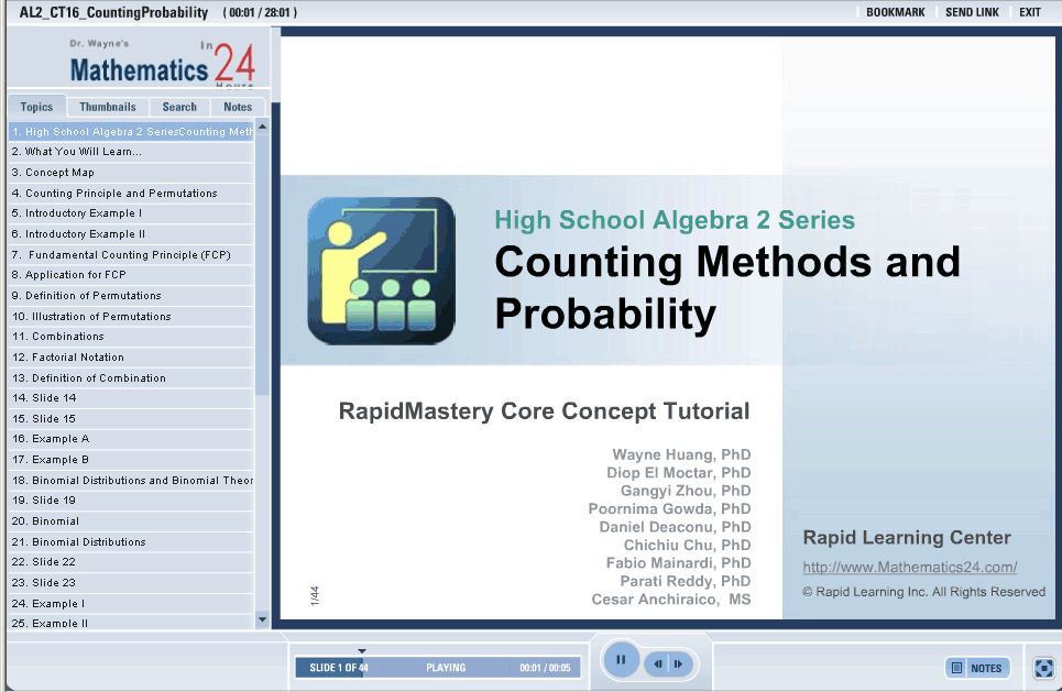This tutorial shows probability and counting and their important concepts. Tree diagrams and illustrations are used to show permutations in the tutorial examples. An example presents the Fundamental Counting Principle. Factorials and tree diagrams are use to show combinations in the tutorial examples.
