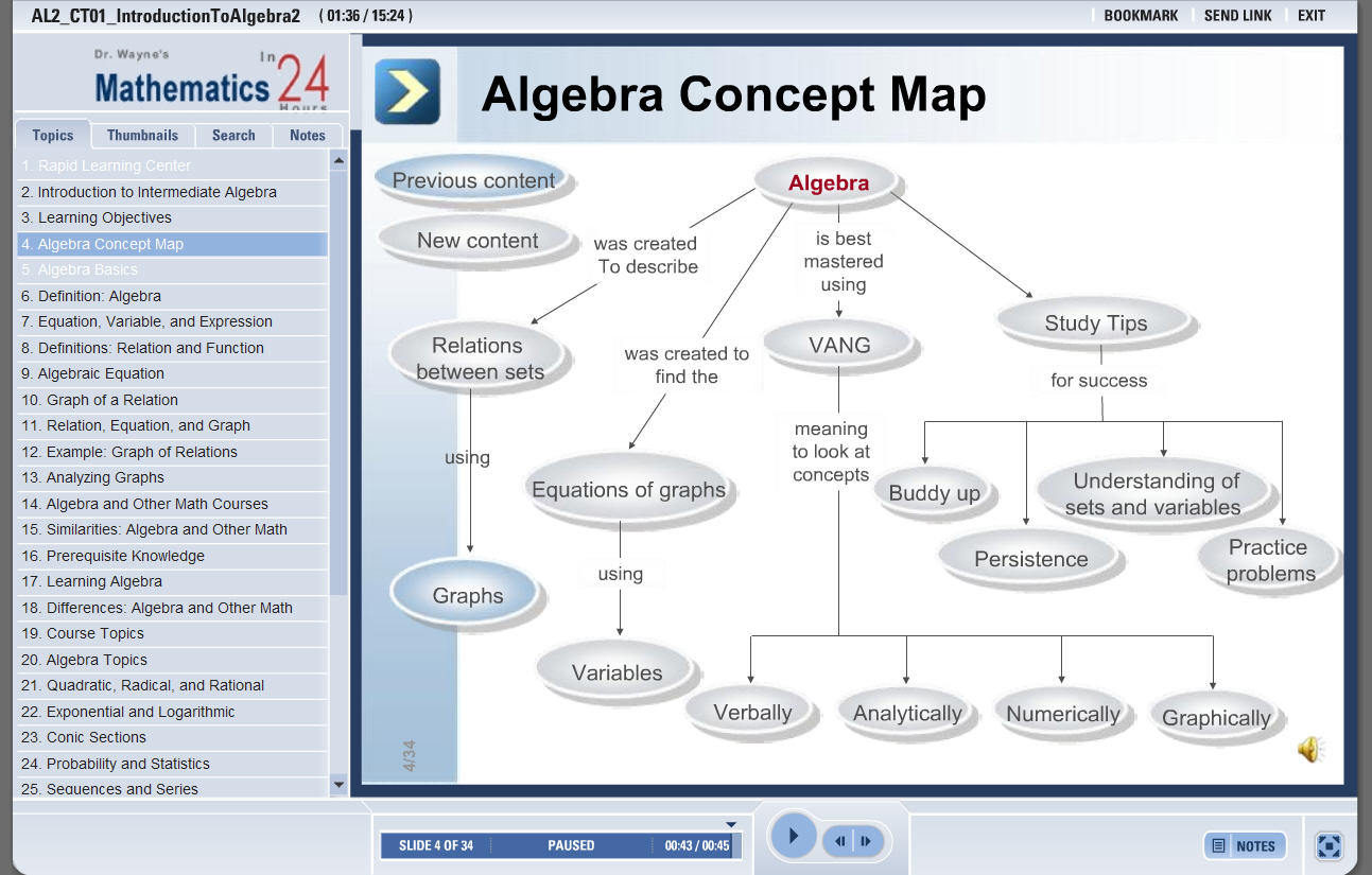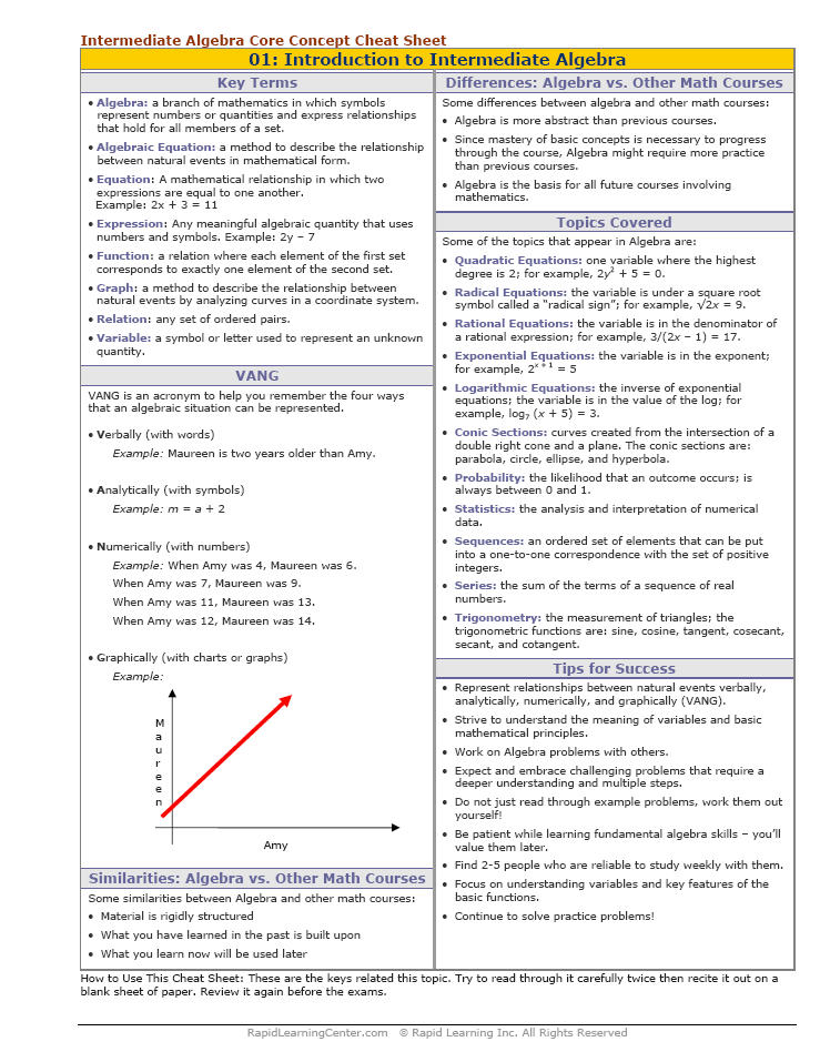 See all 24 lessons in Intermediate Algebra, including concept tutorials, problem drills and cheat sheets: