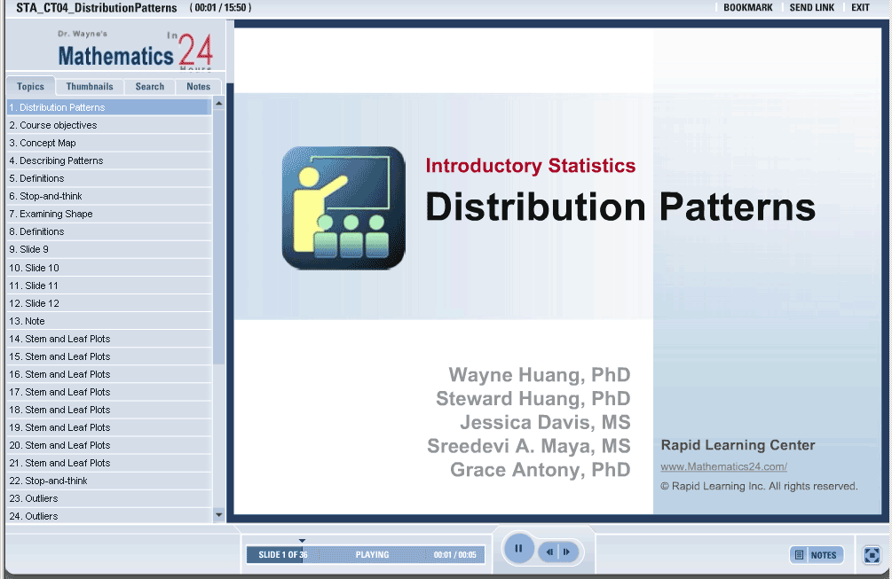 You will learn how to examine shapes, measure center and spread and so by finishing this tutorial you will be able to describe the shape, center and spread of a certain distribution.