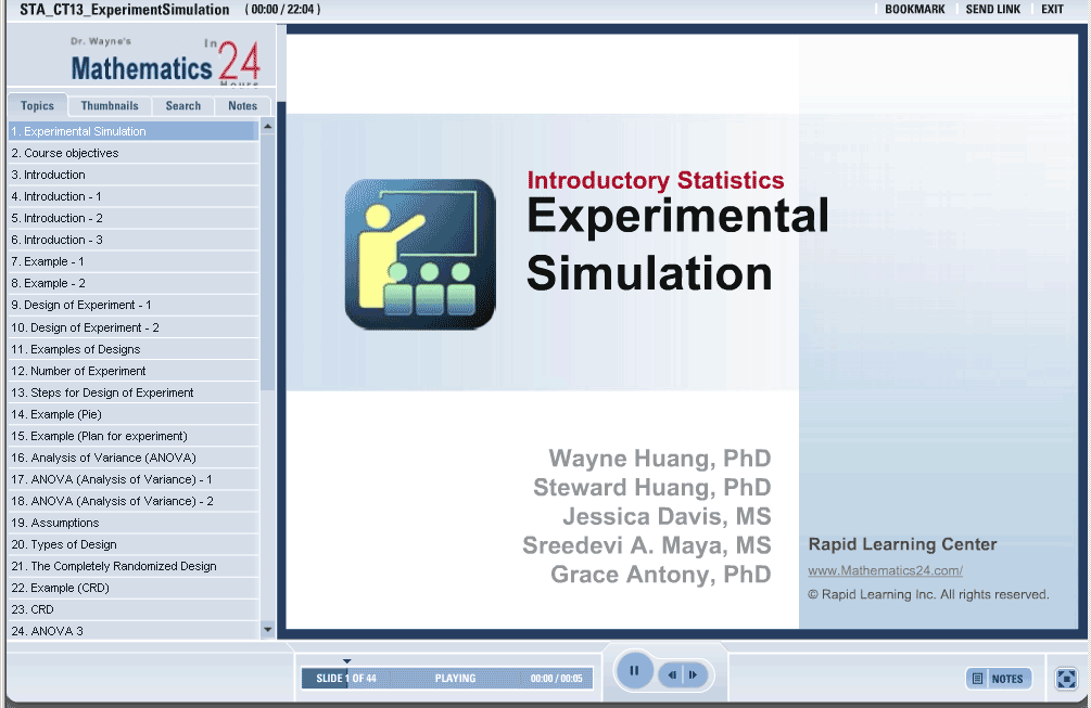 This tutorial shows the basic definitions of by completing this course, you will learn the details about experiment simulation, including introduction, design of experiment, steps in design of experiment, Analysis of Variance (ANOVA), types of experiment, CRD, RBD, axb factorial, etc.