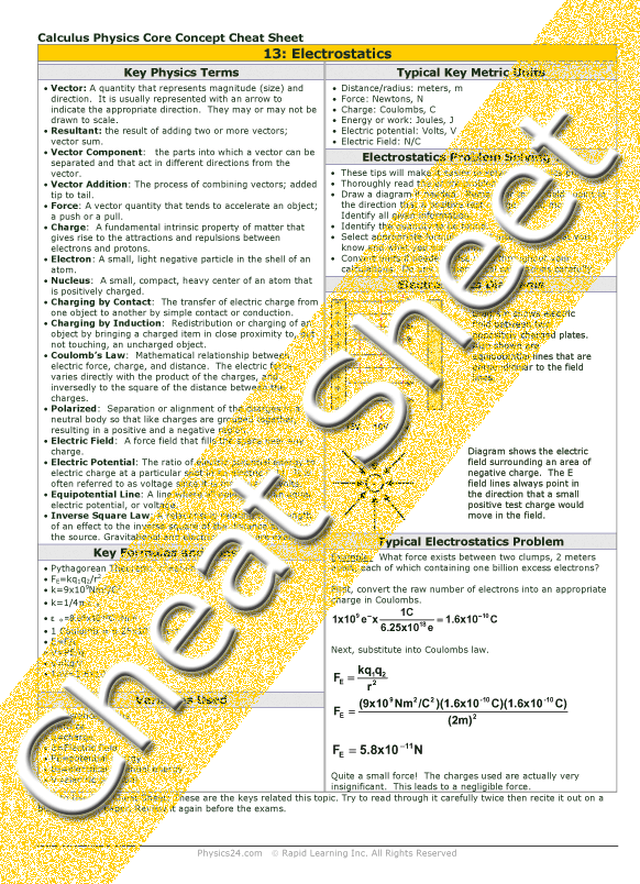 See all 24 lessons in high school  physics, including concept tutorials, problem drills and cheat sheets:
