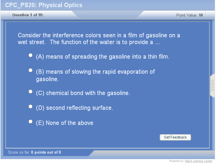 The principle that creates colors on thin layers of transparent substances. The light reflecting off the interior of the substance interferes with light reflecting off the exterior.