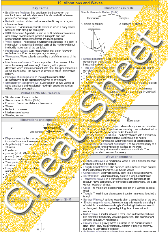 Periodic motion likes waves come in many types. Mechanical waves need a medium to travel, electromagnetic waves don’t.  Transverse waves vibrate perpendicular to the wave motion, longitudinal waves parallel.  Even a simple swinging pendulum exhibits wave behavior.  All of these waves can be described in certain ways.  They all have speed, frequency, period, amplitude and wavelength.  Wave can also combine, or superimpose with each other. This phenomena leads to interference.  This can be constructive or destructive interference.  In some situations where there is a boundary to reflect from, this leads to a standing wave that seems to sit in one location.  This creates points of no movement, nodes, and points of maximum movement, antinodes.