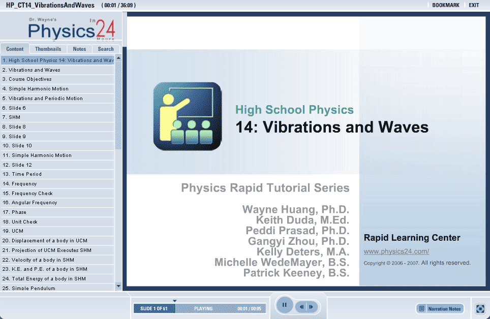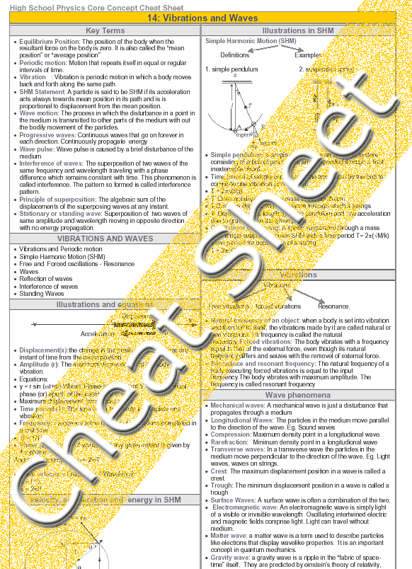 Periodic motion likes waves come in many types. Mechanical waves need a medium to travel, electromagnetic waves don’t. Transverse waves vibrate perpendicular to the wave motion, longitudinal waves parallel. Even a simple swinging pendulum exhibits wave behavior. All of these waves can be described in certain ways. They all have speed, frequency, period, amplitude and wavelength. Wave can also combine, or superimpose with each other. This phenomena leads to interference. This can be constructive or destructive interference. In some situations where there is a boundary to reflect from, this leads to a standing wave that seems to sit in one location. This creates points of no movement, nodes, and points of maximum movement, antinodes.